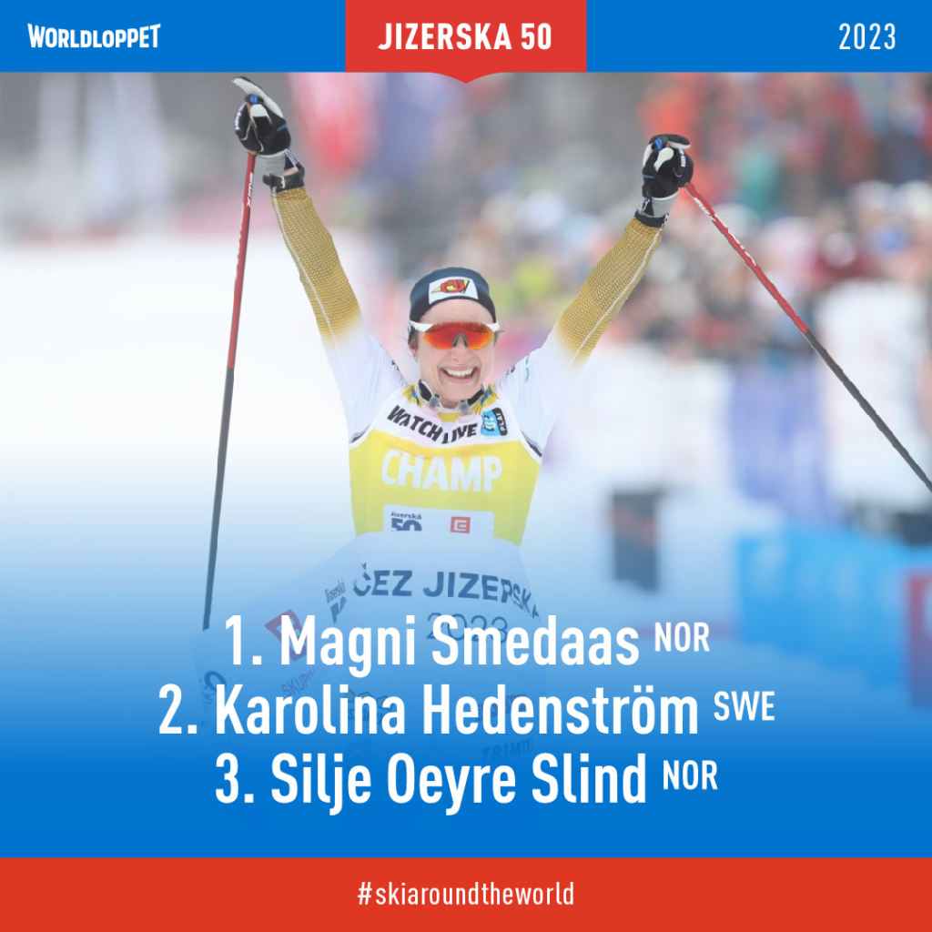 Among the women, a question mark hung over Magni Smedaas who triumphed at the Marcialonga. Following up on her triumph from Italy, the Norwegian left no one in doubt and finished the ČEZ Jizerská 50 in first place with a time of 2:28:44. “I was a little surprised today, it was really challenging at the beginning. But after some time, I started feeling better and better and my skis went faster and faster,” the new ČEZ Jizerská 50 champion laughed at the finish line.
