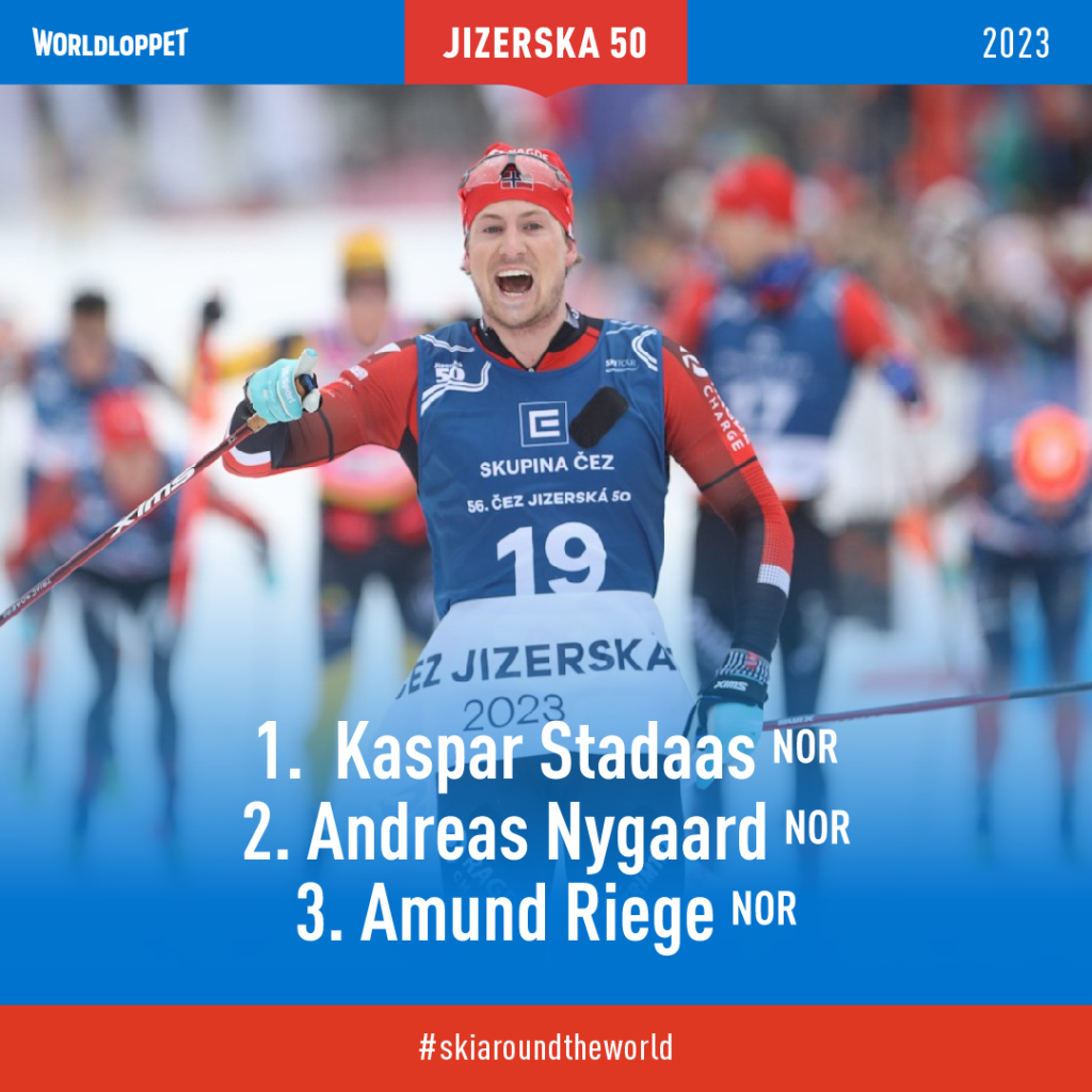 The main question among the men’s world leaders was whether the current leader, Emil Persson from Sweden, could achieve an unprecedented 7th consecutive win in the Ski Classic series. The 2021 Jizerská 50 winner saw his main opponent in Adreas Nygaard from Norway, his compatriot with Czech roots Max Novak also had ambitions for the winning pedestal. But Kasper Stadaas threw a spanner in the works when he maintained his lead until the finish line and finished with a time of 2:05:50.