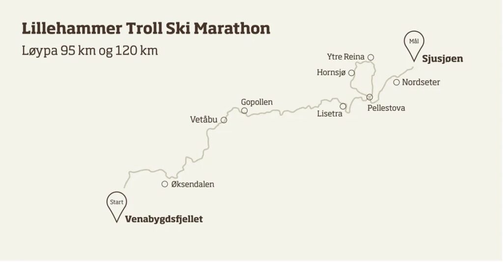 Distances of Lillehammer Troll Ski Marathon