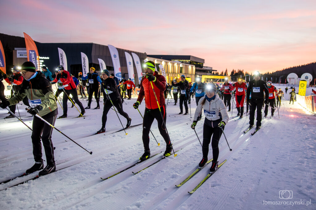 Races over distances of 25, 30 and 42 kilometers will once again be included in the classification of the Worldloppet series. The organizers, Bieg Piastów Association, faced a big challenge: Rising temperatures and lack of snowfall made it necessary to use artificial and natural snow storage facilities. As they had to cancel the race past season, the organizers did everything in advance to ensure the race this year. And this was needed. The stored snow got fertilized in places along the tracks where natural snow was missing. Thanks to this, the route of the main race has retained the marathon distance and will be over 42 km (originally 50 km). The start and finish line are located at the DCS Polana Jakuszycka stadium, where also all facilities are located.
